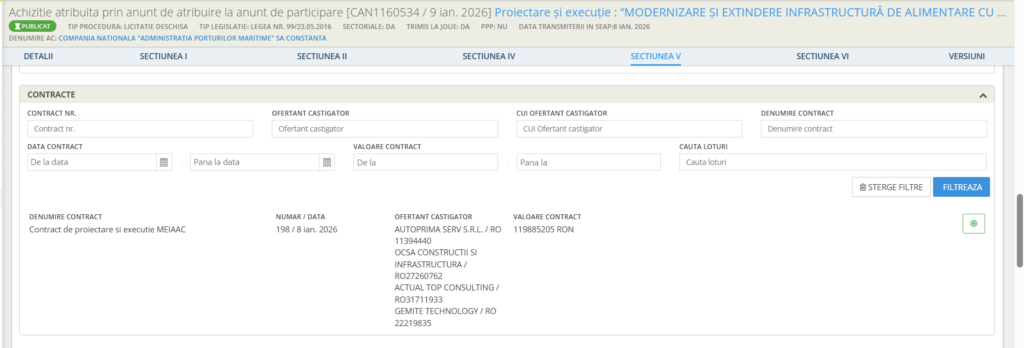 Contract de 120.000.000 lei cu Administrația Portului Constanța
