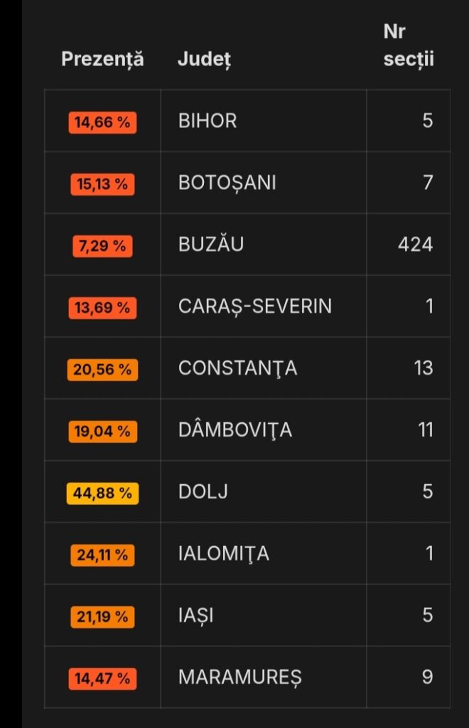 UPDATE 14.20- Până la acest moment, în București au votat 17.56 la sută dintre cetățenii cu drept de vot, adică peste 318.000 de persoane. Pentru Consiliul Județean Buzău au votat 13.28 la sută dintre alegătorii înscriși pe listele electorale permanente și cele speciale.