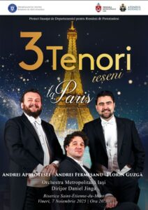 Peste 50.000 de euro, bani din fondurile Ateneului Național din Iași, costă concertele din străinătate susținute de Andrei Apreotesei, Andrei Fermeșanu și Florin Guzgă, cunoscuți drept „Trei tenori ieșeni”. Ateneul Național este o instituție subordonată Primăriei Iași, condusă până anul trecut tocmai de Andrei Apreotesei. Acesta s-a suspendat din funcție după ce a fost numit manager interimar al Complexului Muzeal Național „Moldova”.