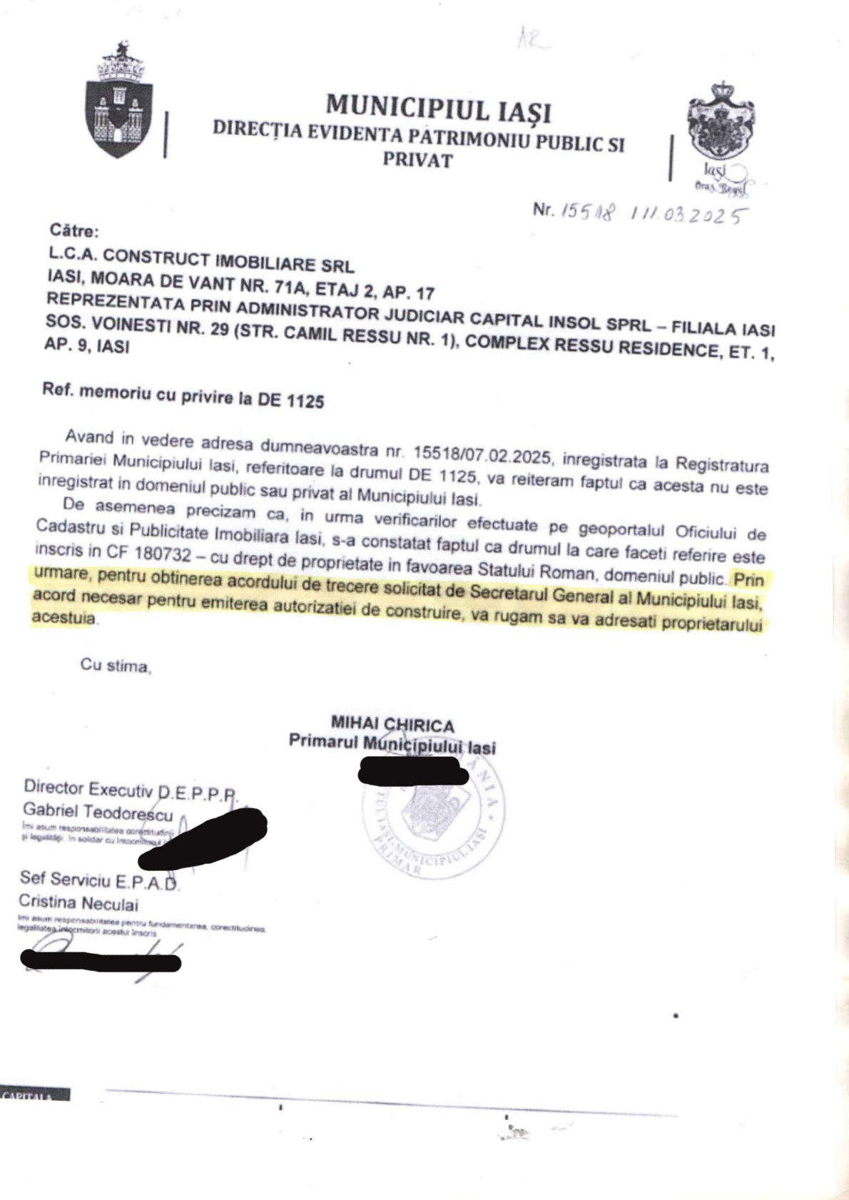 Primăria Municipiului Iași a confirmat primirea petițiilor, precizând, într-un răspuns oficial, că acestea au fost direcționate spre analiză și soluționare compartimentelor de specialitate, instituția declarându-și disponibilitatea de a rezolva problemele ce intră în competența sa.