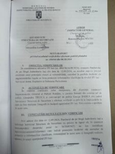 Fragment din notă-raport din data de 24 decembrie 2024, întocmit de Structura de Securitate din cadrul IGPR: