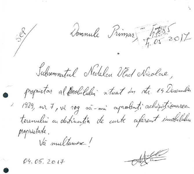Concret, Vlad Nedelcu a solicitat Primăriei cumpărarea unui teren în suprafață de 136 mp situat în strada 14 decembrie 1989 nr. 7. Iar Chirica îi întoarce favorul pentru voturile de susținere date timp de trei ani de zile și aprobă favorabil cererea. Însă plata datoriei nu se oprește aici. Bonus, prețul stabilit pentru vânzare a fost stabilit la incredibila sumă de 51 euro/mp! Un preț la fel de scandalos ca și vilele cumpărate de copii de Chirica din pensia bunicilor. Un preț ridicol în condițiile în care chiar Nedelcu a plătit o sumă de câteva ori mai mare pentru terenul învecinat pe care l-a cumpărat în 2016. Un preț prin care Primăria Iași este prejudiciată cu câteva zeci de mii de euro dacă această înțelegere Nedelcu-Chirica va fi parafată în Consiliul Local. Ba mai mult, Nedelcu are un dosar penal pentru că a construit un imobil pe proprietatea invecinată fără autorizație de construire. Cumpărarea terenului îi dă posibilitatea să înceapă demersurile pentru obținerea unei autorizații de construire, iar dosarul penal ar rămâne astfel fără obiect.