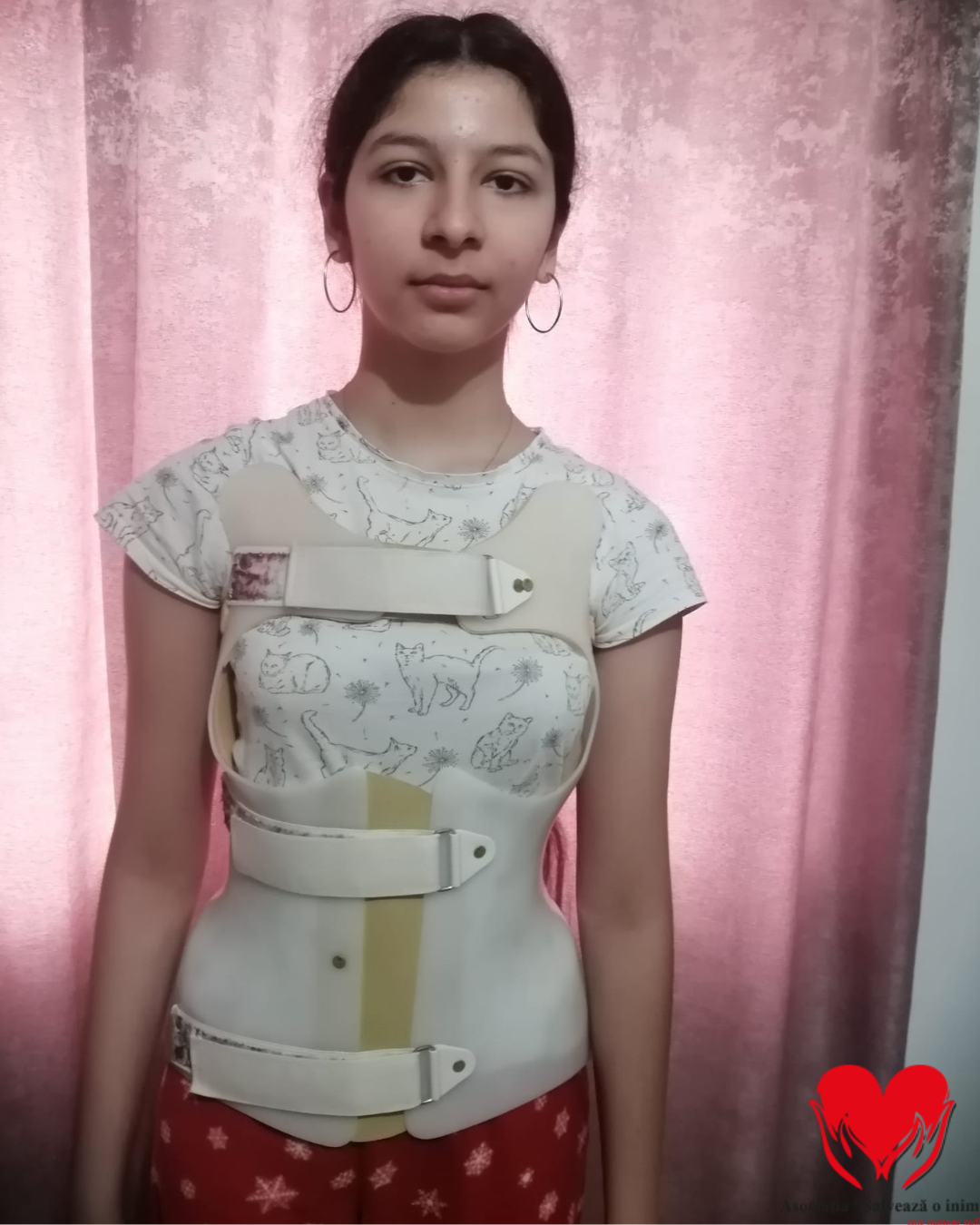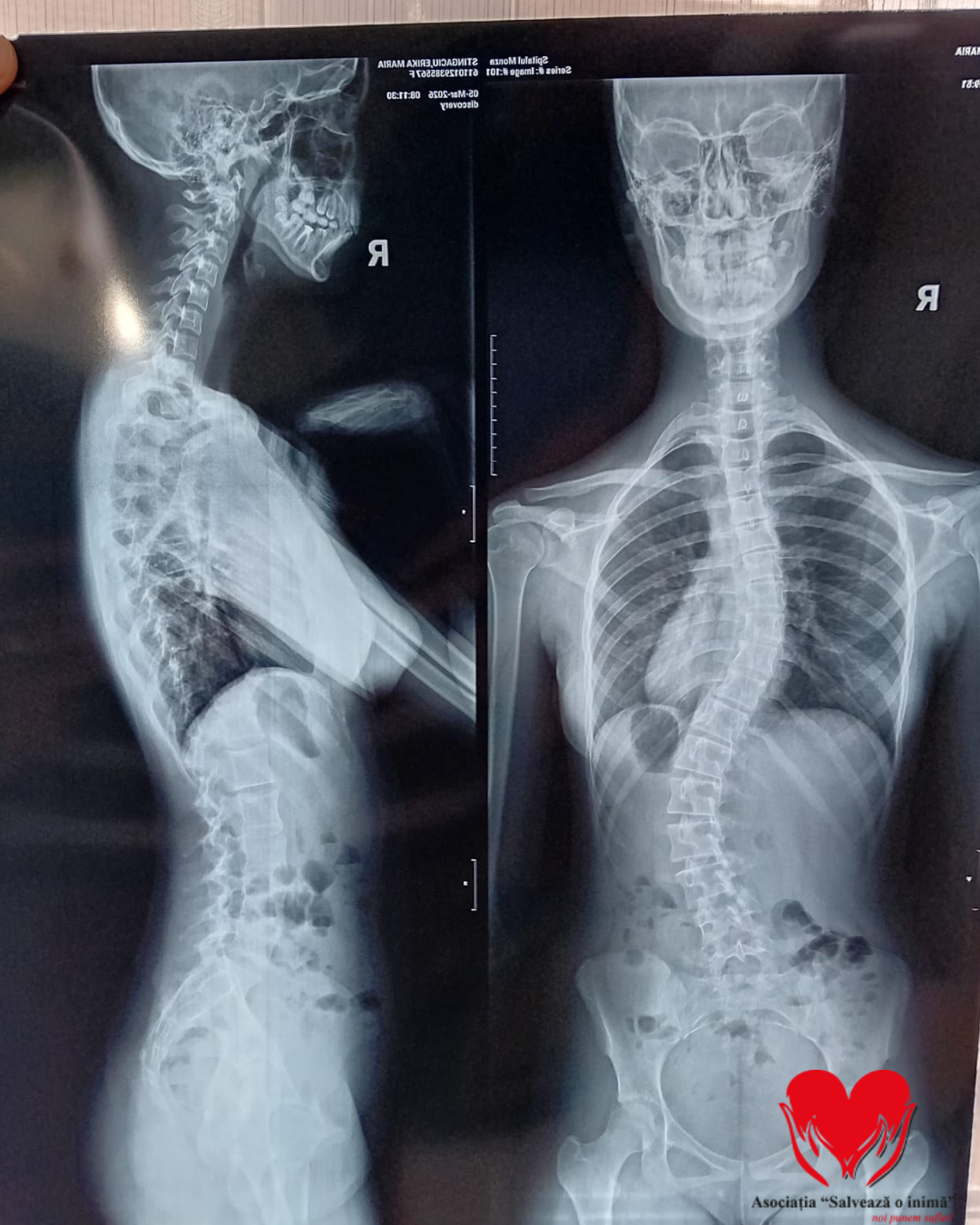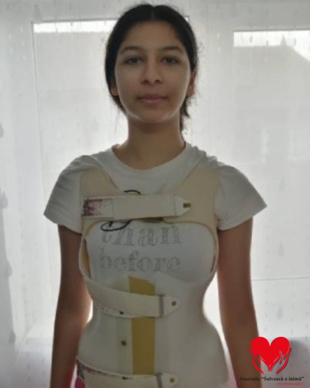 „Fiecare zi simt cum spatele meu se schimbă și devine tot mai greu să stau dreaptă. Corsetul mă ajută, dar nu oprește ceea ce se întâmplă. Îmi doresc doar să pot merge la școală fără durere și fără teamă, să fiu ca ceilalți copii. Operația este șansa mea, vă rog din suflet, ajutați-mă.”- spune Erika Maria Stingaciu.