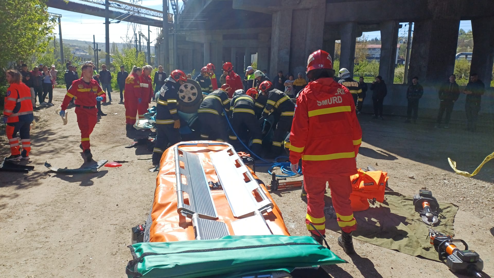 În urma unui apel primit prin Sistemul Național Unic pentru Apeluri de Urgență 112, pompierii militari intervin în municipiul Iași, în zona Pasarelei Bucium, unde un autoturism, implicat într-o coliziune cu un autocamion, a căzut de pe pasarelă.