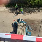 FOTO-Accident cumplit în Iași. O mașină a căzut în gol de pe pasarela Bucium după ce s-a ciocnit de un TIR
