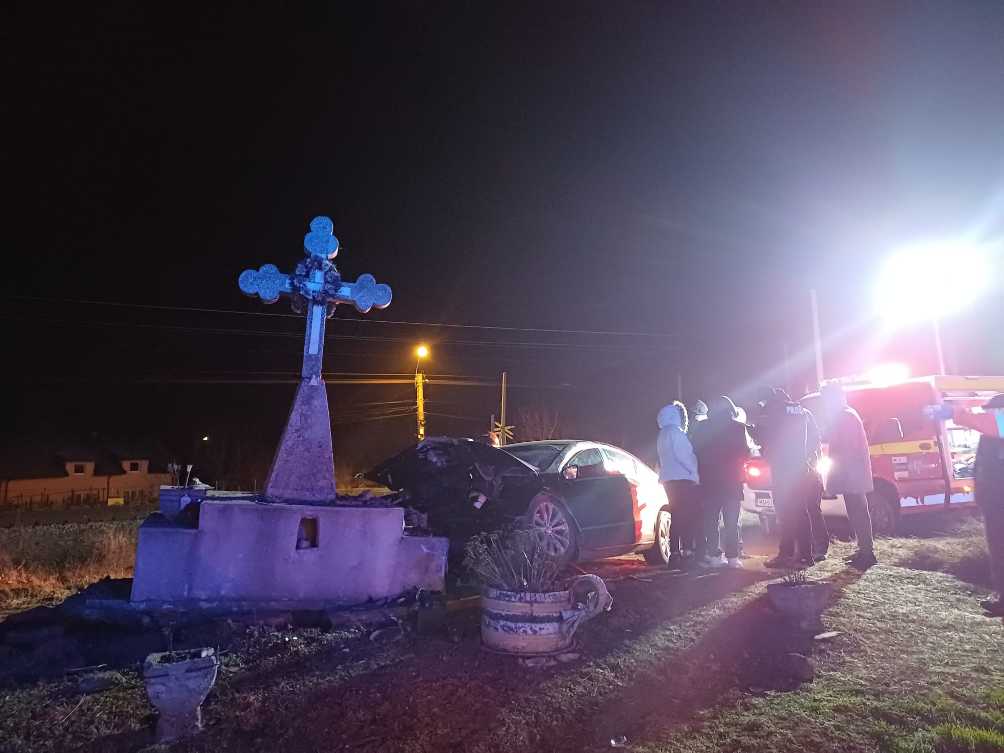FOTO- Accident rutier lângă Podu Iloaiei. O mașină a intrat violent într-un monument