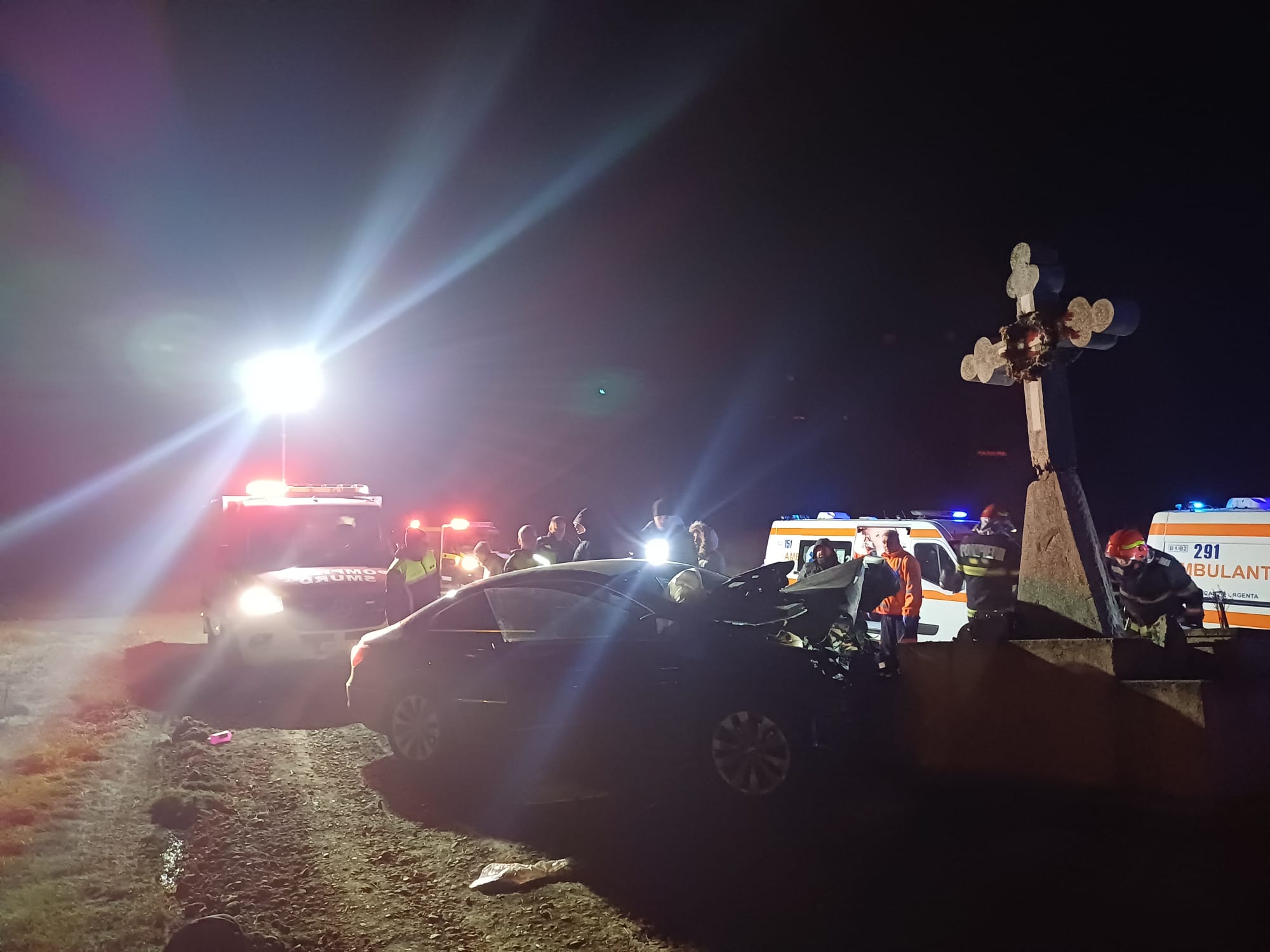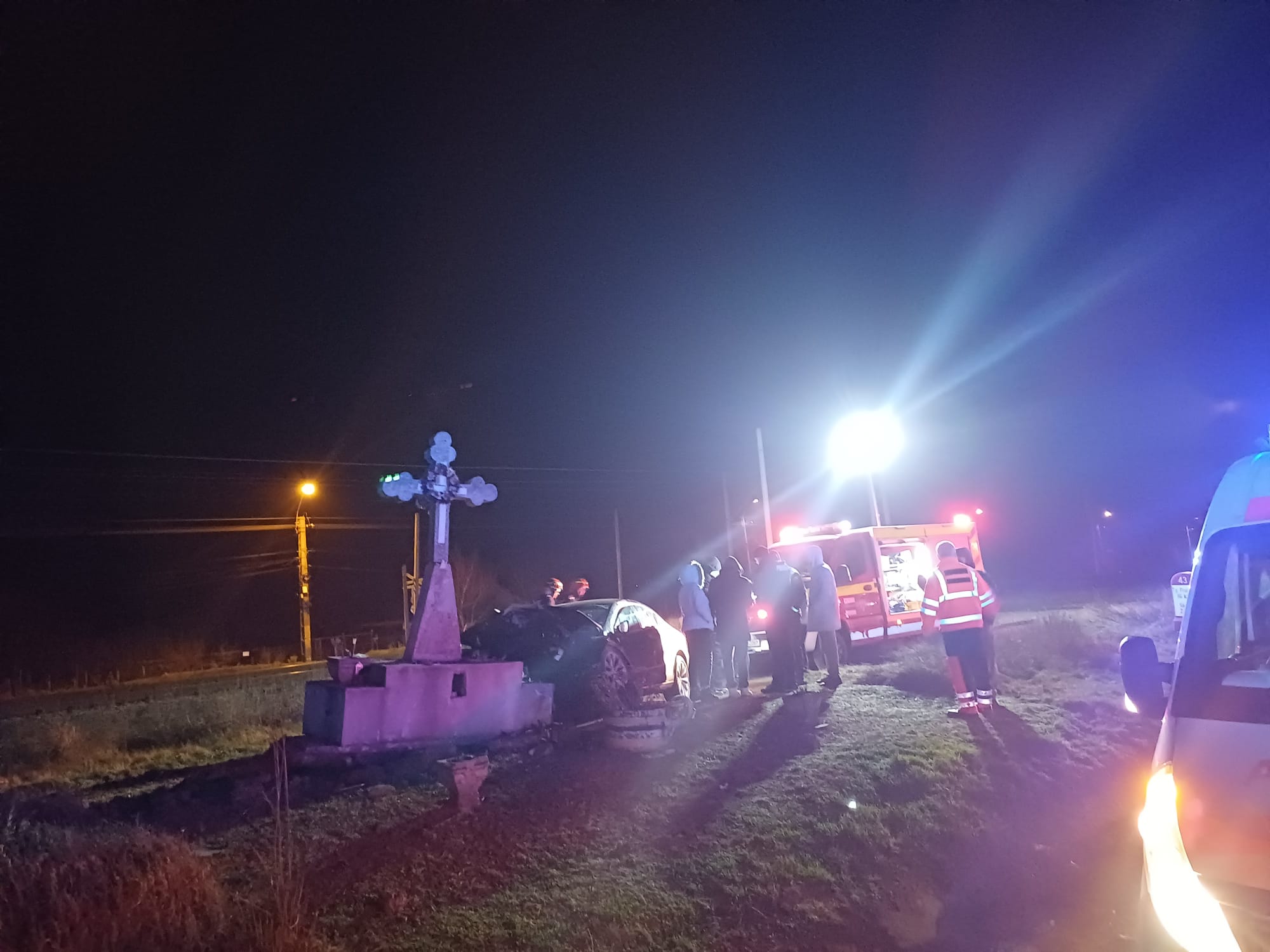Un accident rutier a avut loc în cursul nopții trecute pe drumul european E583 în zona localității Budăi. Un autoturism a intrat violent într-un monument de pe marginea drumului. Conform pompierilor, în urma accidentului au rezultat două victime, care inițial au rămas blocate în autoturismul avariat.