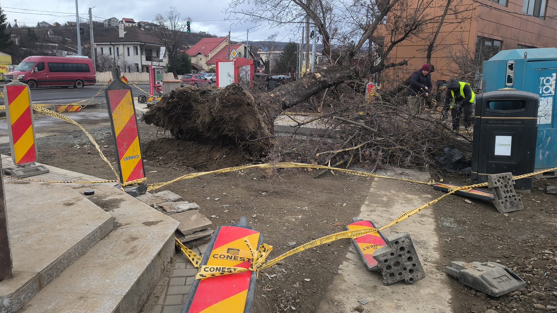 Un arbore s-a prăbușit pe drumul din zona Ciric spre Aeroport, iar un altul în zona Bucium, în apropiere de clinica Arcadia.