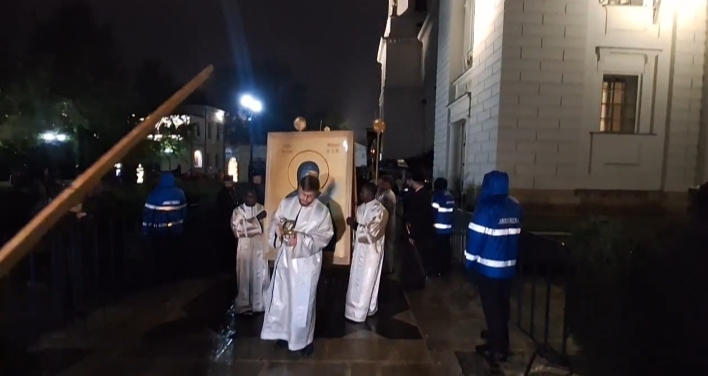 Capătul rândului de pelerini se află în acest moment pe strada Alexandru Ipsilanti.