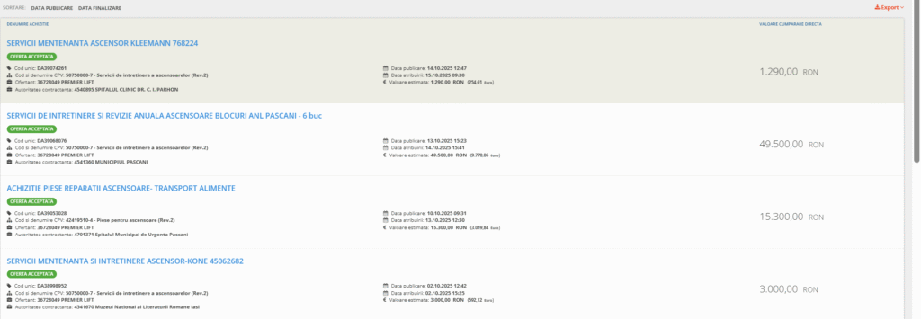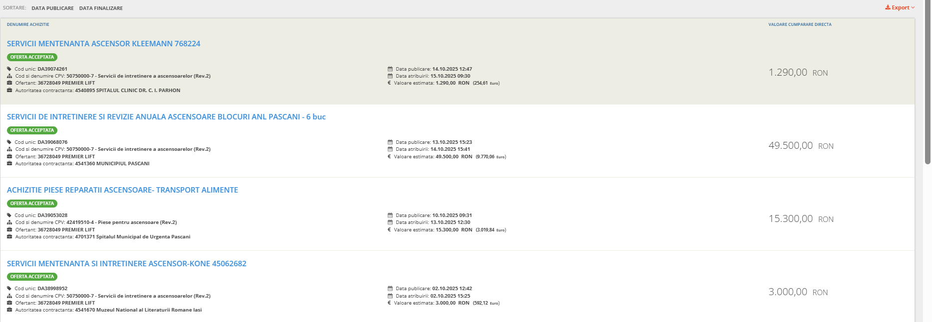 De exemplu, în 2025 a încheiat nouă contracte cu instituții publice. Dintre acestea, cinci au fost cu Spitalul Municipal Pașcani și unul cu Primăria municipiului Pașcani. Unitatea sanitară este coordonată tot de primăria condusă de liberalul Marius Pintilie, coleg de partid cu Bogdan Crîșmaru. Cu Spitalul din Pașcani au fost parafate trei contracte în luna mai, unul în luna iunie și unul în octombrie privind întreținerea ascensoarelor din clădire. În octombrie 2025, Primăria Pașcani a încheiat un contract în valoare de 49.500 lei fără TVA cu Premier Lift pentru întreținerea și revizia lifturilor din blocurile ANL, pe o perioadă de 15 luni.