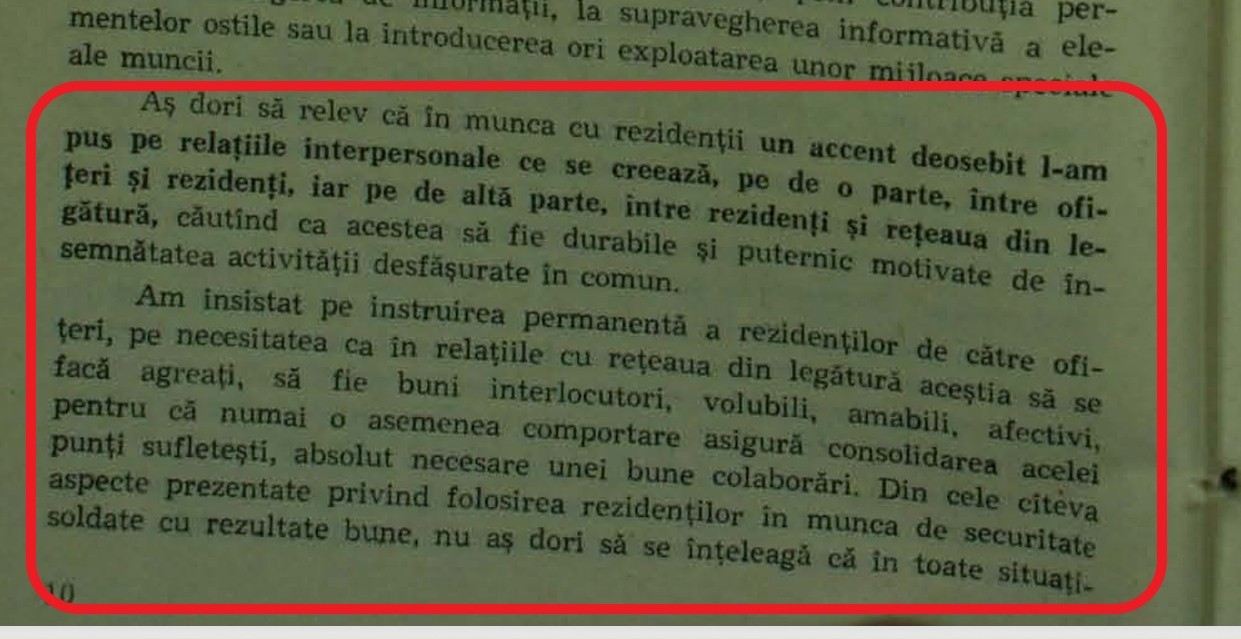 Aici, șeful securiștilor de la Iași susține că între „rezident” și „informator” trebuie stabilită o relație personală foarte puternică, chiar emoțională.