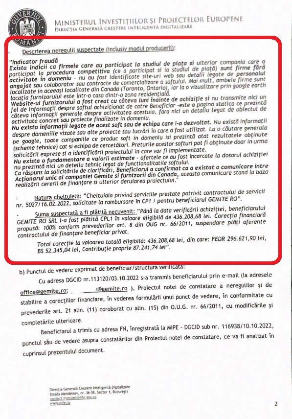 În decembrie 2022, 7IAȘI a publicat documente din raportul prin care MIPE acuza Gemite RO SRL de organizarea unei fraude prin care a urmărit dirijarea fondurilor europene accesate către firme care făceau parte din același grup.