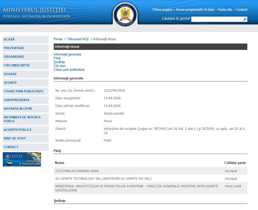 Parchetul European a dispus în cursul săptămânii trecute trimiterea în judecată a omului de afaceri Alexandru Coțofan, dar și a firmei pe care acesta o conduce, Gemite Technology SRL, sub acuzația de obținere ilegală de fonduri europene. Fost consilier local al PNL Iași în perioada 2016 – 2020, Coțofan a purtat un adevărat război cu Ministerul Investițiilor și Proiectelor Europene (MIPE), care a sesizat Parchetul European condus de Laura Codruța Kovesi. Compania condusă de politicianul local a derulat un proiect european în valoare de aproximativ 10.000.000 de lei, însă MIPE a descoperit mai multe nereguli, printre care dirijarea unor contracte finanțate de UE către firme care fac parte din același grup. Firma Gemite Technology SRL (fostă Gemite RO SRL), parte a grupului canadian Gemite Products Inc, ar fi dirijat un contract de 980.000 de dolari către o companie care își are sediul în aceiași localitate cu „firma-mamă”, Ontario din Canada. Coțofan a declarat pentru 7IAȘI că se consideră nevinovat și că în urma derulării proiectului statul român nu a fost prejudiciat: „Financiar, nu am creat niciun prejudiciu statului. Am derulat 20 de lucrări științifice, 16 simpozioane. Suntem singura firmă din România și sud estul Europei cu o tehnologie nouă privind materialele de deșeuri”. În 2022, 7IAȘI a scris în exclusivitate despre dosarul în care MIPE îl acuza pe omul de afaceri ieșean de fraudă.
