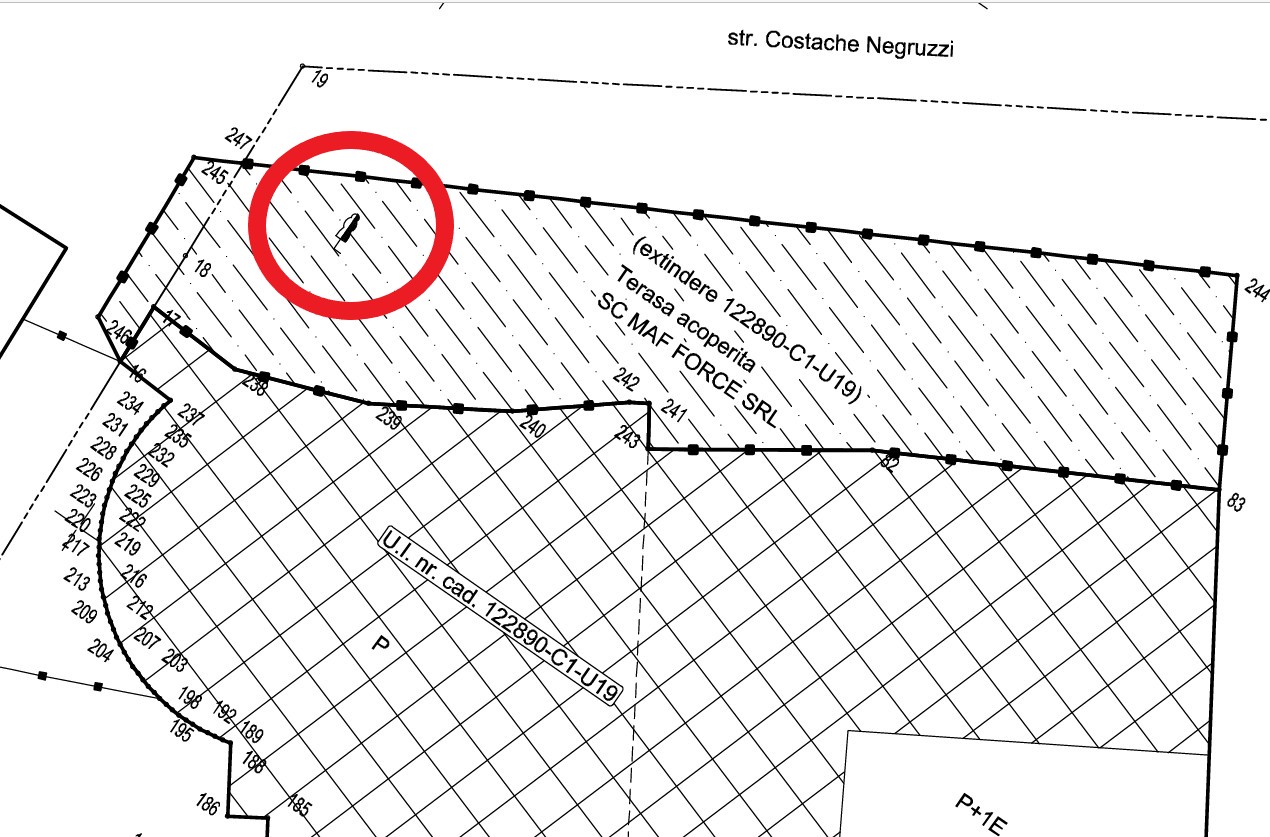 Prin extinderea restaurantului „Mamma Mia” în lateralul clădirii „Casa Modei” (partea de nord a clădirii) pârâtele ocupă suprafața de 4 mp teren din terenul UAT mun Iași. Suprafața de 4 mp teren este redată grafic pe planșa nr.1”, se arată în raportul realizat de expertul tehnic judiciar Claudiu Viorel Crisatche.