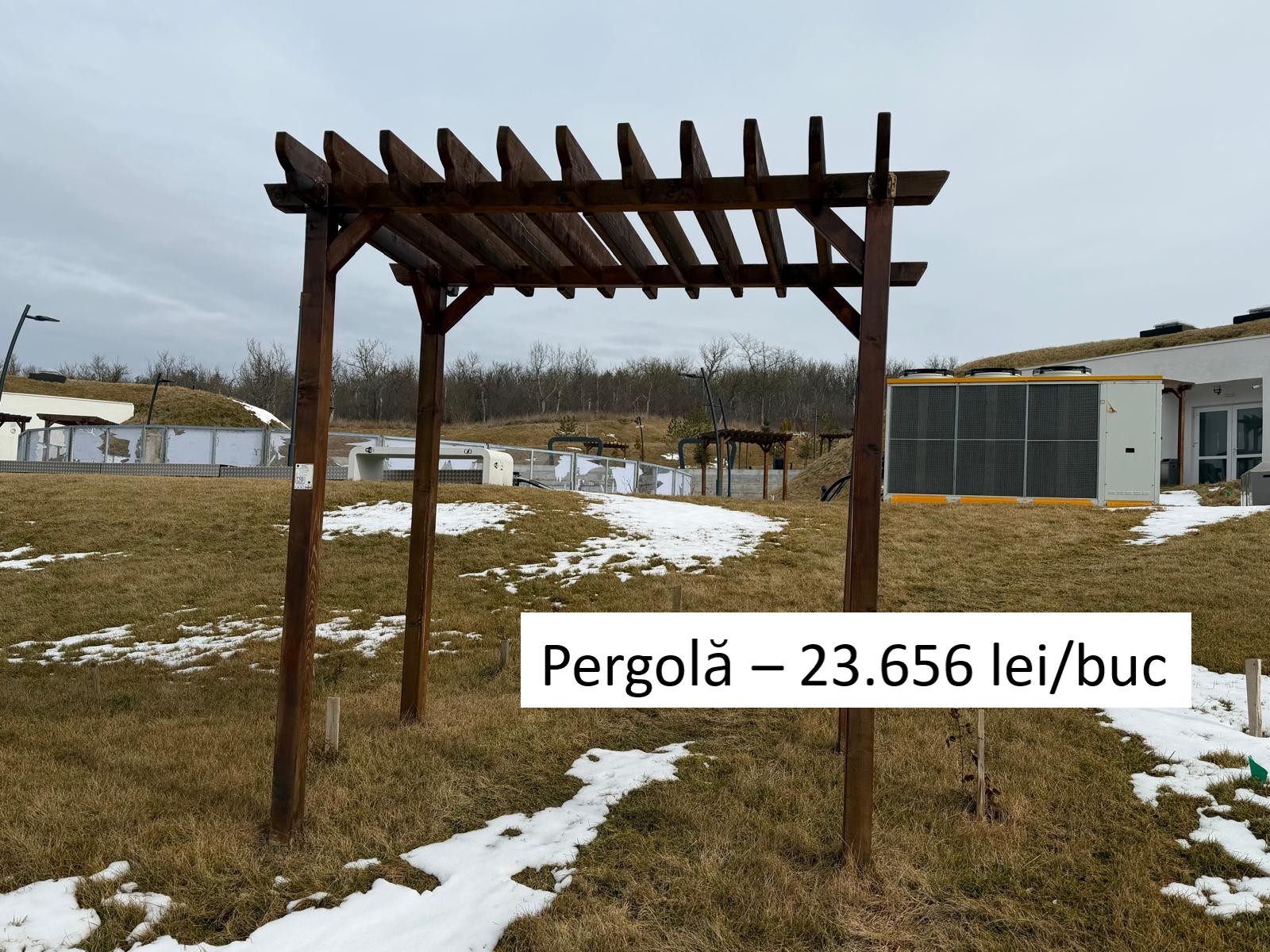 O așa-zisă pergolă, o structură ușoară din câteva elemente din lemn, a costat peste 23.000 de lei. Un balansoar, 8.000 de lei. Un set de piese-gigant de șah a fost cumpărat cu aproape 30.000 de lei. Prețurile nu includ TVA!