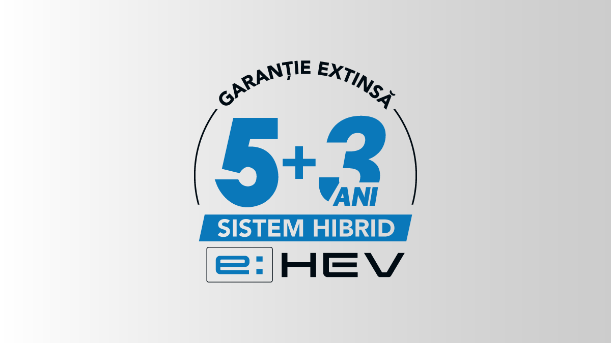 Oferim Garanție Standard pentru Sistemul Hibrid de 5 ani sau 100.000 km. Garanția Extinsă Sistem Hibrid e:HEV extinde perioada acoperită cu încă 3 ani, în limita a 200.000 km.