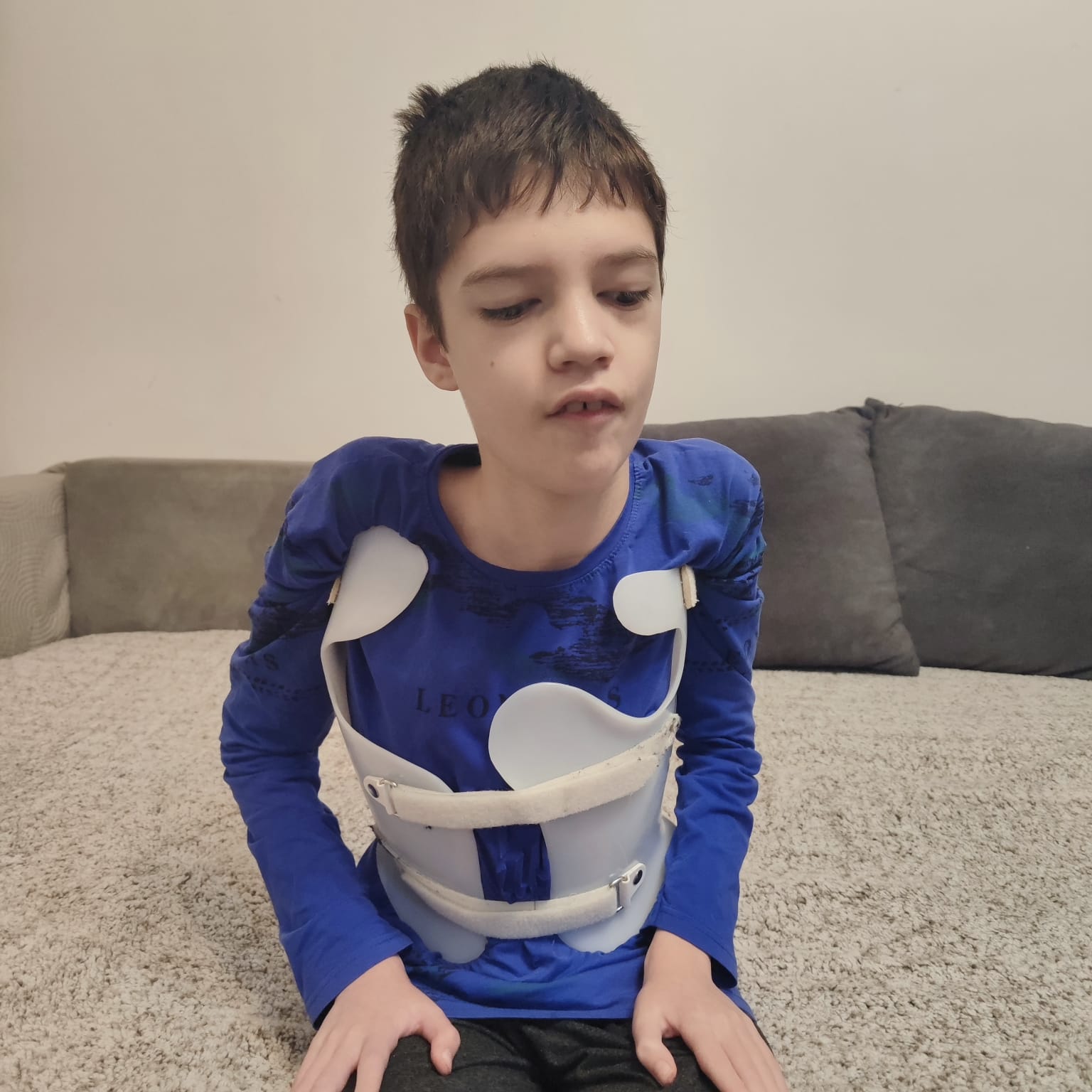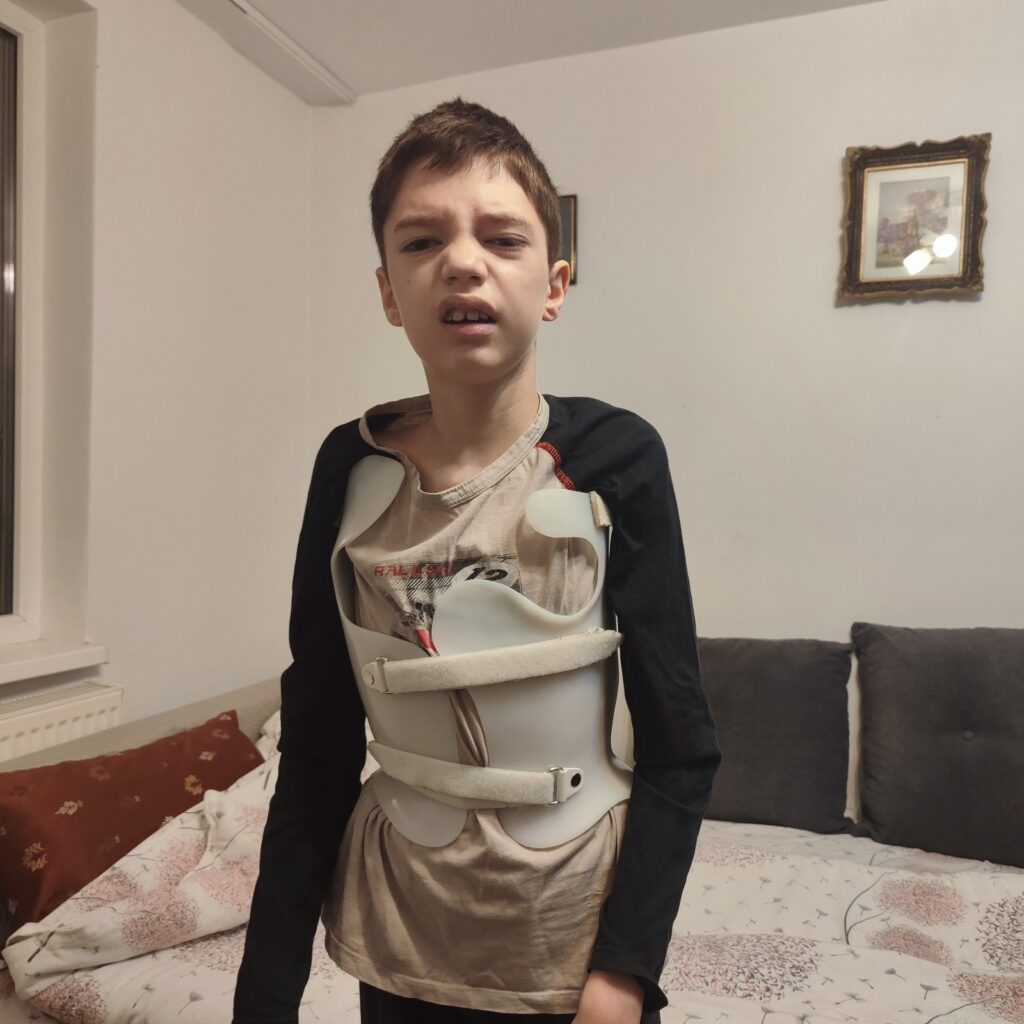 În prezent, crizele sunt parțial controlate medicamentos, însă dezvoltarea cognitivă a copilului este sever afectată, corespunzând vârstei de aproximativ doi ani. Pe acest fond medical complex, evoluția rapidă a scoliozei reprezintă un risc major pentru supraviețuire.