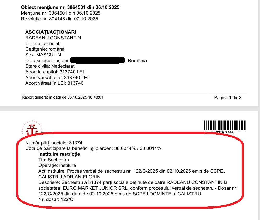 Încă o firmă a cerut sechestru pe averea lui Rădeanu