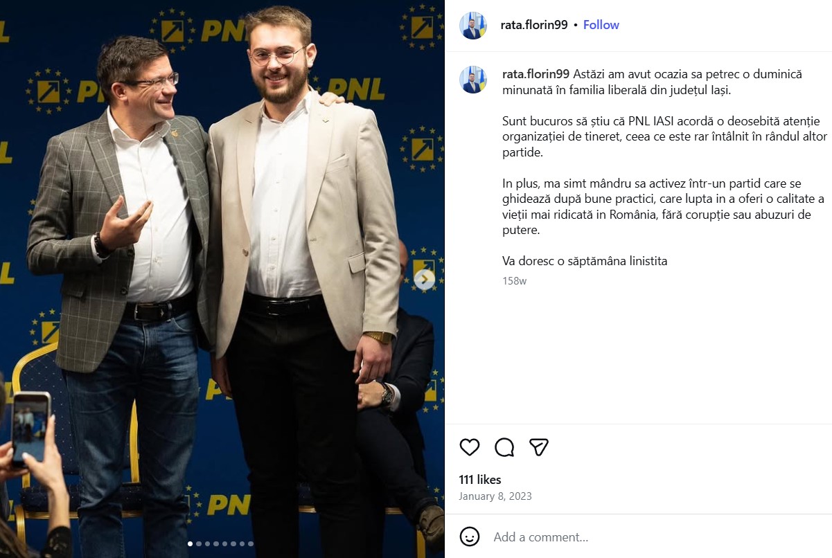 „Astăzi am luat parte la întâlnirea Biroului Politic Județean PNL Vaslui, organizată și coordonată de domnul deputat și președintele PNL Iași, Alexandru Muraru, alături de Andrei Dascălu, consilier județean PNL Iași. Discuțiile au vizat direcțiile de organizare pentru perioada următoare și obiectivele politice pentru 2026, cu accent pe acțiuni concrete și pe apropierea de comunitate. Este important ca astfel de întâlniri să se traducă în inițiative clare și în implicare reală la nivel local”, susține Rață într-o postare din 18 ianuarie.