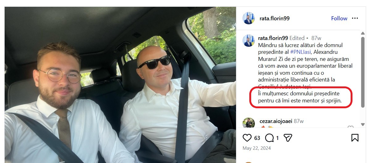 Florin Rață este președintele Clubului Studenților Liberali (CSL), organizație studențească a PNL Iași care reunește tineri activiști de partid. Rață este student la Facultatea de Istorie din cadrul Universității Al.I. Cuza, iar Estera Lazăr, partenera sa de afaceri, este studentă la Facultatea de Economie și Administrarea Afacerilor (FEAA). Pe lângă distribuirile postărilor lui Muraru, tânărul Florin Rață îndeplinește ocazional și rolul de șofer al acestuia. Muraru este președinte interimar la PNL Vaslui, iar zilele trecute, pentru a ajunge la o ședință a organizației din județul vecin, a fost adus cu mașina de Florin Rață.