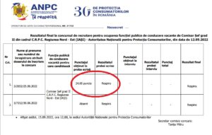 Actualul șef interimar al CRPC Regiunea Nord- Est Iași și-a depus dosarul în data de 25 august 2022. În urma examenului, Monica Diana Pintilie a obținut 24 puncte (nota 2.40) și a fost declarată respinsă. Pentru a putea promova examenul ar fi trebuit să obțină minim 70 puncte (nota 7). Actualul șef al Protecției Consumatorului Iași a luat un punctaj mai mult decât penibil. Din cele 24 puncte, 10 erau din oficiu, astfel încât șeful CRPC Iași a scris pe foi de numai 14 puncte.
