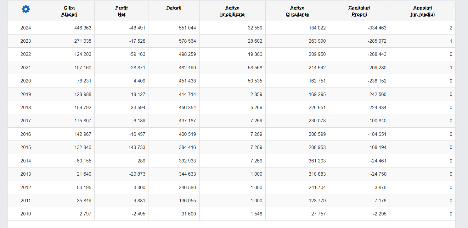 Societatea Ionis Mire SRL a fost înființată în 2010. În 2024 a avut o cifră de afaceri de 446.000 lei, a înregistrat un profit negativ de aproape 50.000 lei și datorii de peste 550.000 lei, cu doi angajați trecuți oficial în acte.