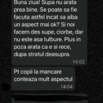 „Supa nu arată prea bine. Se poate să fie făcută astfel încât să aibă un aspect mai ok? Și noi facem des supe, ciorbe, dar nu este așa tulbure. Plus, în poză arată că e și rece, după stratul de deasupra. Pentru copii, la mâncare contează mult aspectul”