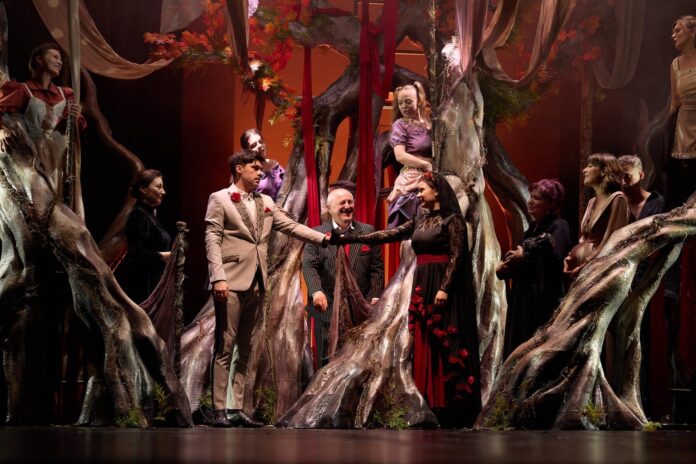 Teatrul Tineretului Piatra Neam – Nunta însângerată, de Federico García Lorca; traducere de Victor Constantin Bercescu, versuri de Teodor Balș; regia și muzica originală: 𝐕𝐥𝐚𝐝 𝐓𝐫𝐢𝐟𝐚𝐬̦; scenografia: 𝐁𝐞𝐫𝐧𝐚 𝐘𝐚𝐯𝐮𝐳(costume) și 𝐁𝐮̈𝐬̦𝐫𝐚 𝐄𝐫𝐨𝐠̆𝐥𝐮 𝐃𝐨𝐠̆𝐚𝐧 (decor); lighting design: 𝐂𝐨𝐬𝐭𝐢 𝐁𝐚𝐜𝐢𝐮