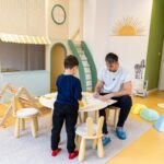 - Zona atelierelor senzoriale, unde cei mici își dezvoltă motricitatea prin activități creative precum modelatul lutului sau pictura.