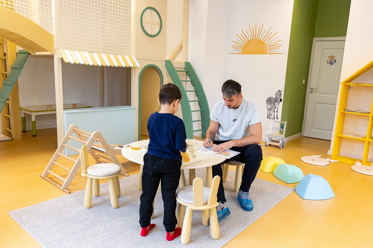 - Zona atelierelor senzoriale, unde cei mici își dezvoltă motricitatea prin activități creative precum modelatul lutului sau pictura.